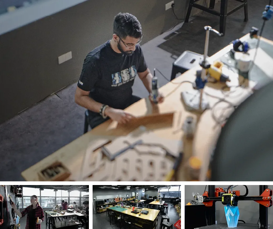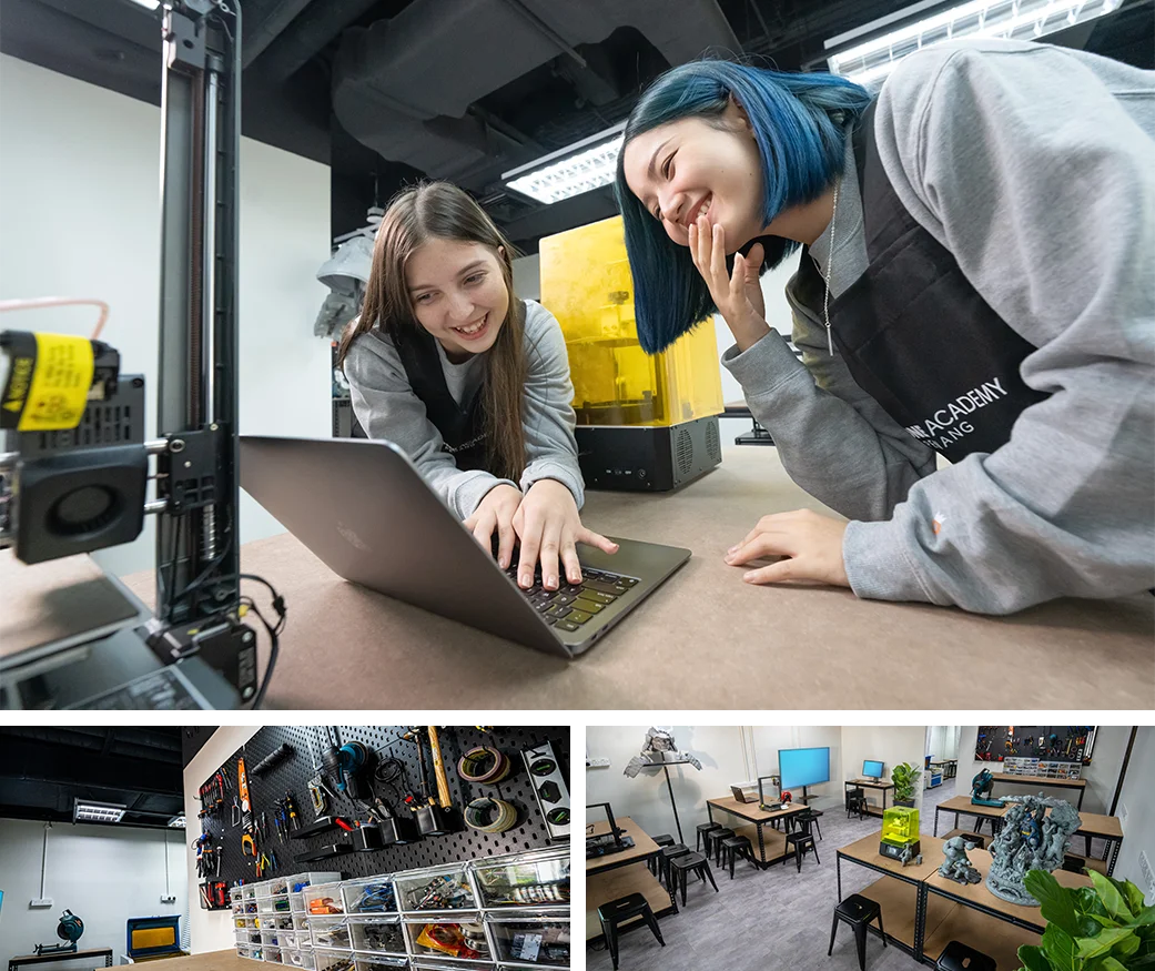 The Fabrication Lab is an industry-standard space equipped with tools such as 3D printers and laser cutters to help students merge their creative ideas with the latest technology, ensuring a practical hands-on experience and amazing outcome.