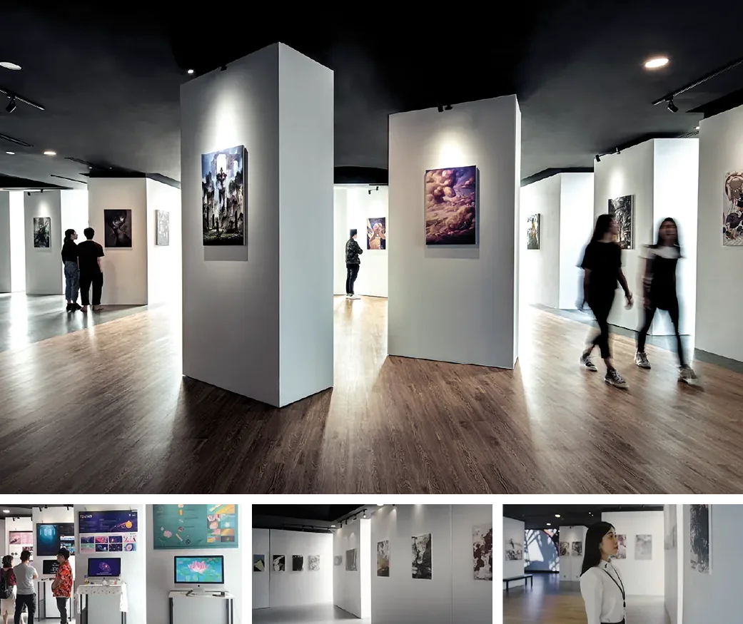 A striking display wall filled with collectible art toys serves as a hub of creativity. Showcasing inspiring packaging designs and IP creations, these displays transform the space into a dynamic gallery, sparking curiosity and artistic exploration among students.